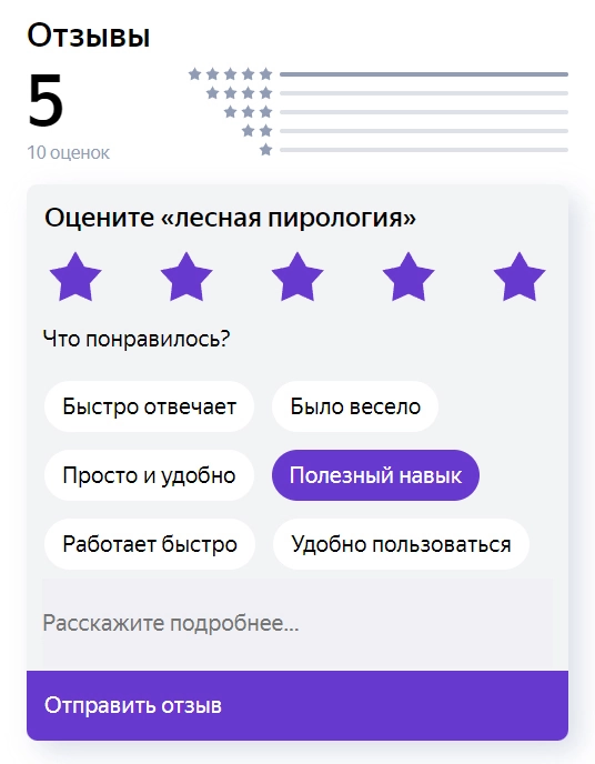 • Отправляйте отзывы на работу навыка на электронную почту: ivanovvs@firescience.ru.