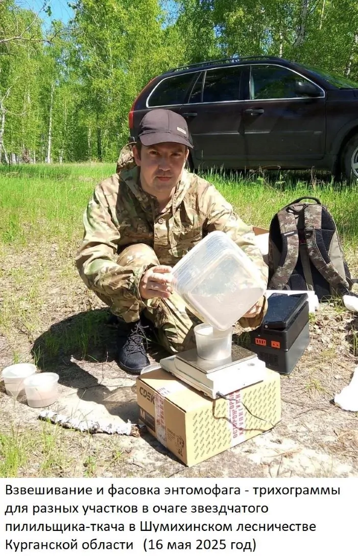 Уже в первой декаде июня 2025 года запланирован учёт по применению трихограммы против звездчатого пилильщика-ткача, по результатам которого будет понятно на сколько данный энтомофаг может быть эффективен в Сибири.